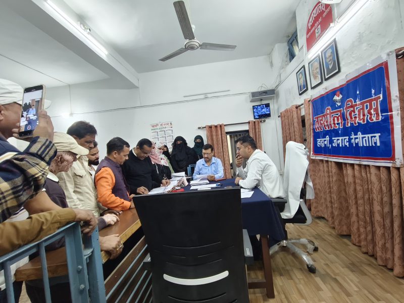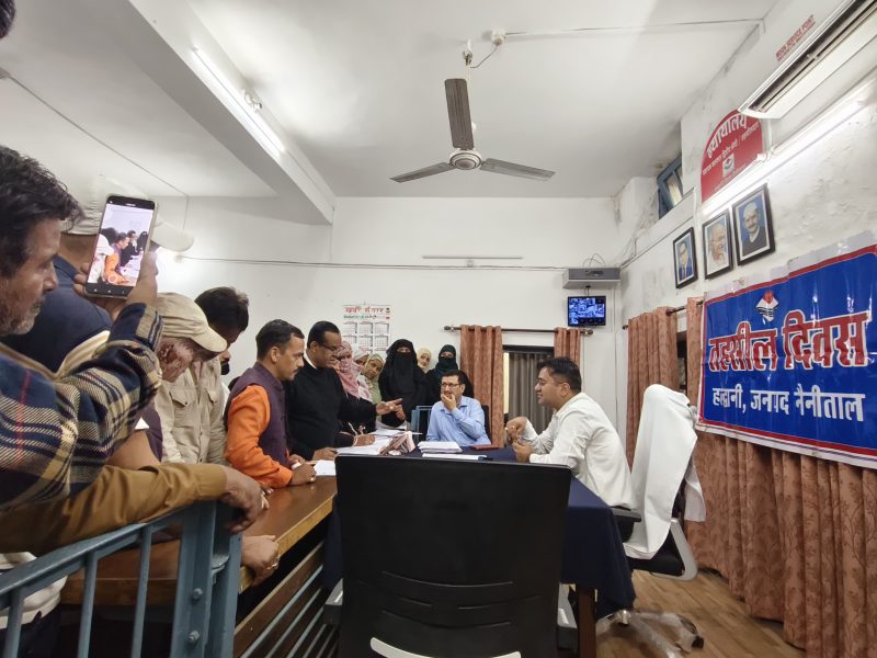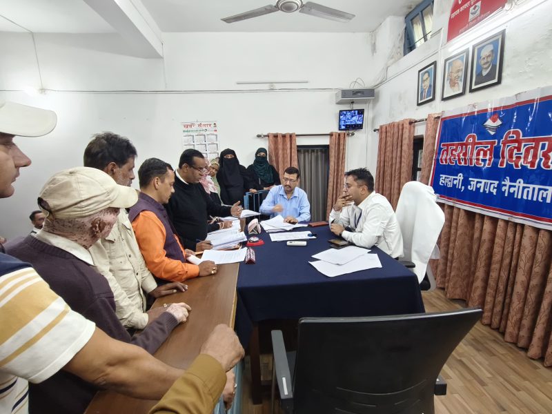 तहसील हल्द्वानी में आयोजित तहसील दिवस में जल निगम, उत्तराखण्ड पावर कारपोरेशन लि०, जल संस्थान, वन विभाग, पशुपालन विभाग, परिवहन विभाग, बाल विकास विभाग, स्वास्थ्य विभाग, समाज कल्याण विभाग, पूर्ति विभाग एवं खाद्य एवं आपूर्ति विभाग द्वारा प्रतिभाग किया गया.तहसील दिवस में 04 शिकायत समाज कल्याण विभाग, 04 नगर निगम हल्द्वानी, 05 राजस्व विभाग, -02 खाद्य विभाग, 02 लो०नि०वि०, 01 चिकित्सा विभाग, 01 विद्युत विभाग, 01 जल निगम, 01 वन विभाग, सिंचाई विभाग हल्द्वानी की प्राप्त हुई। इस प्रकार कुल 21 प्राप्त हुई है। शिकायतों के समाधान हेतु संबंधित विभागों को प्रेषित किया जा रहा हैं।